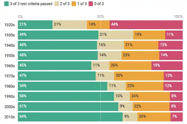 Las numerosas webs que han sometido películas y series de todo tipo, incluidas las más recientes, coinciden en que la mayoría no lo aprueba. Por contra, lo pasan más de un 80% cuando se trata de protagonistas masculinos.